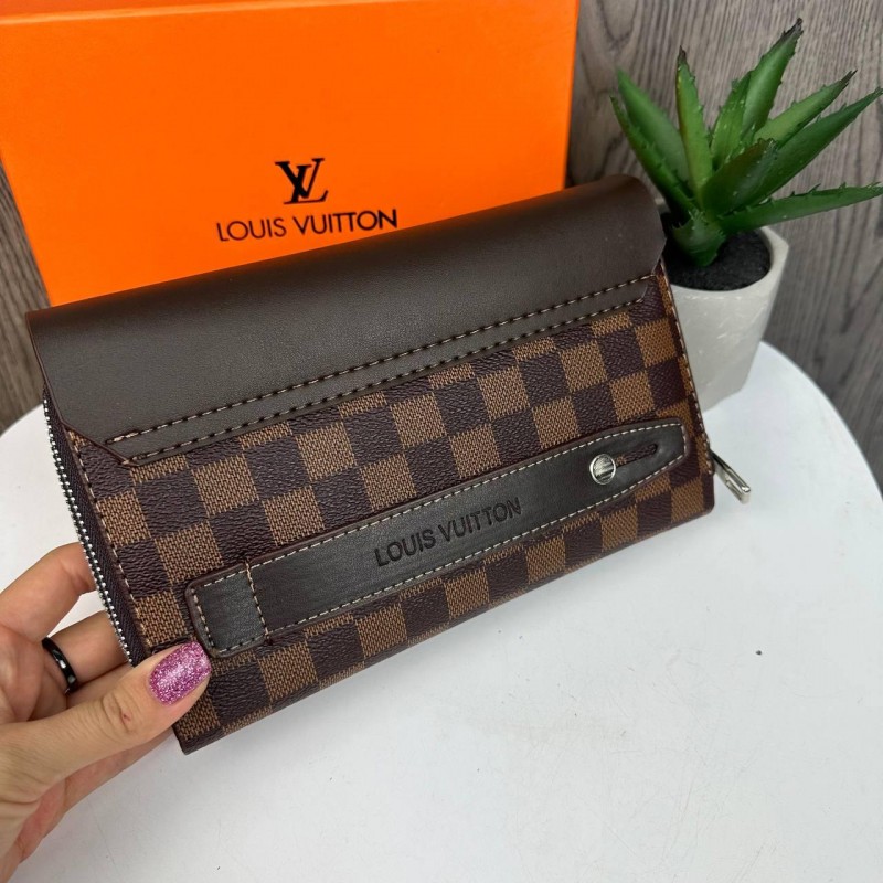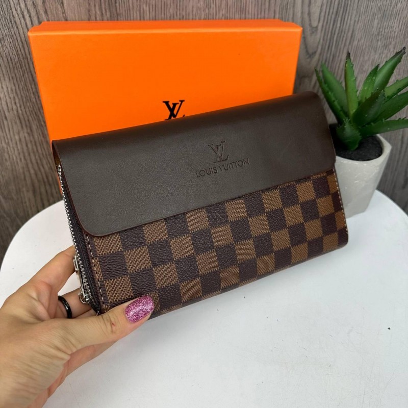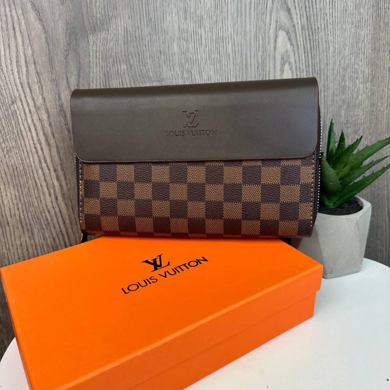 Большой мужской клатч барсетка стиль Луи Витон клетка в коробке, портмоне кошелек