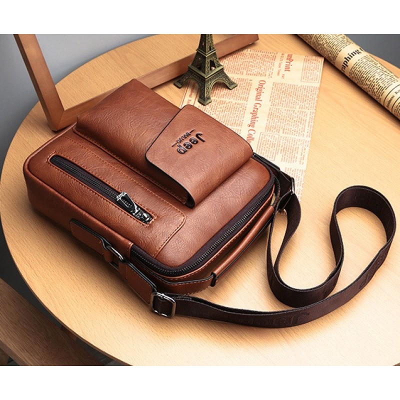 Мужская сумка планшет Jeep повседневная на плечо, барсетка сумка-планшет для мужчин эко кожа Джип