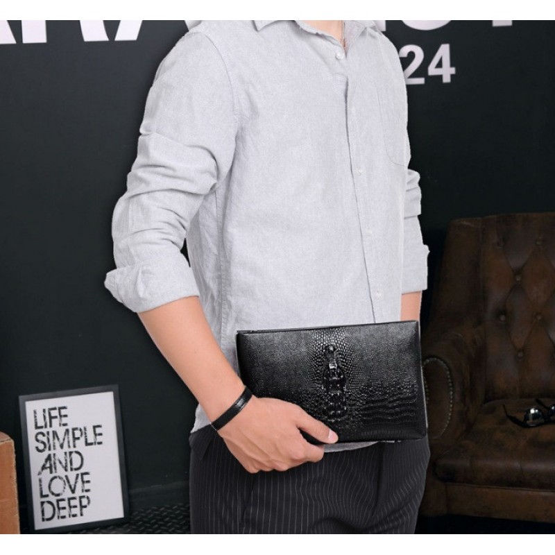 | Тип назначения | Стильная мужская барсетка клатч с крокодилом для документов, мужской клатч сумка на руку для мужчины черный |