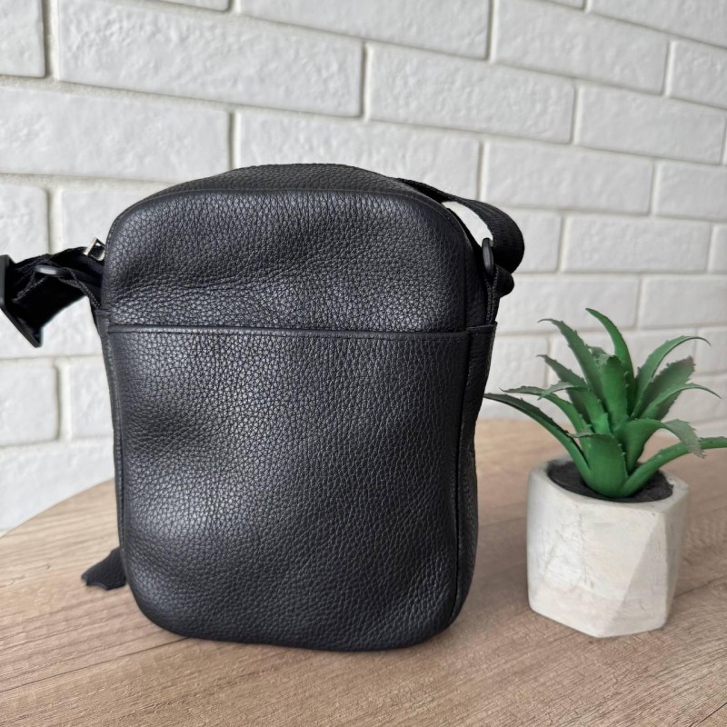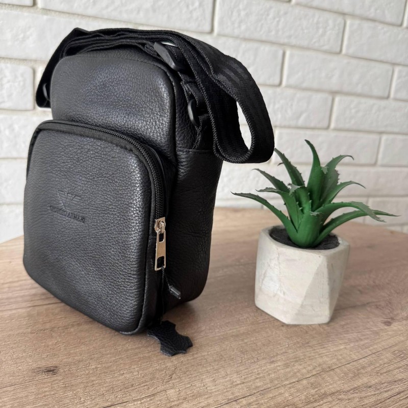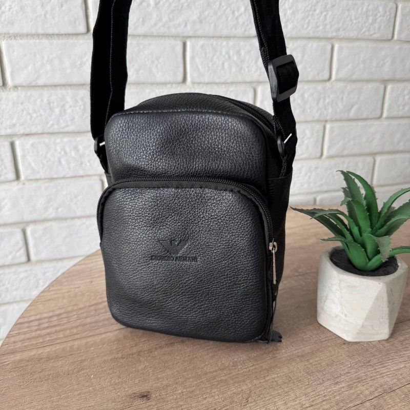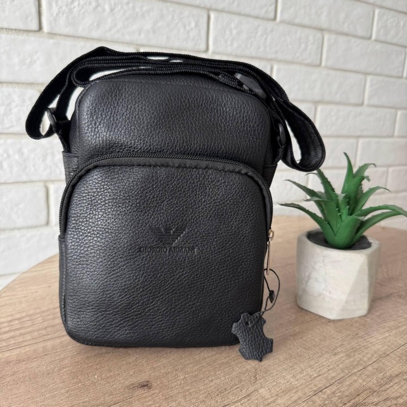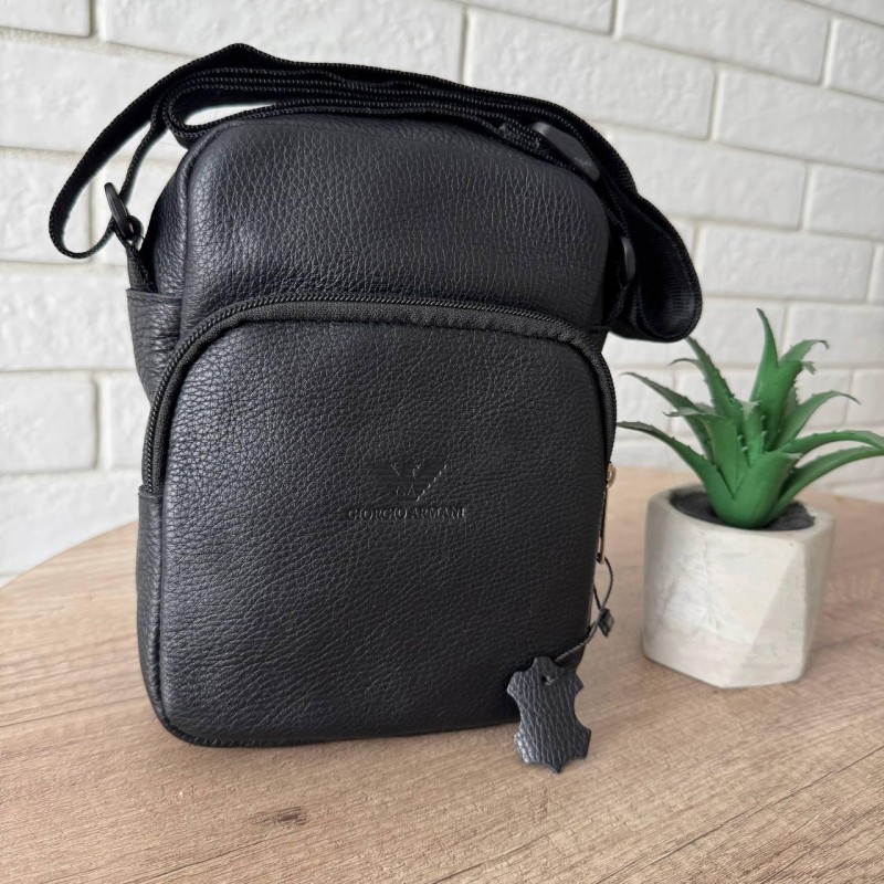 Кожаная мужская сумка-планшетка стиль Армани черная, мужская сумка барсетка Armani натуральная кожа на плечо, флотар
