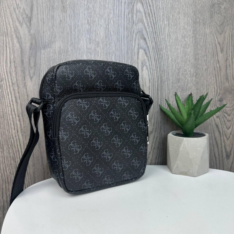 Модная мужская сумка планшетка на плечо стиль Guess, сумка-планшет Гесс черная для мужчин, вместительная