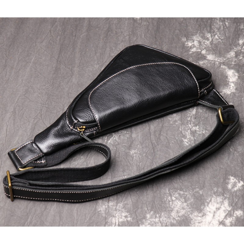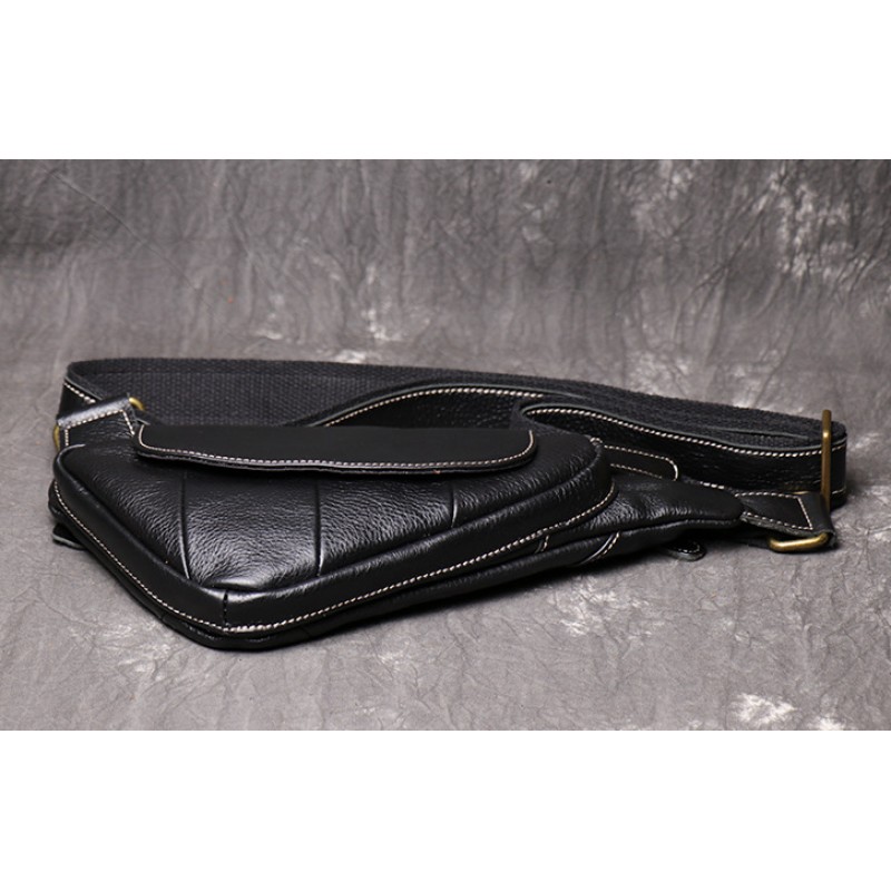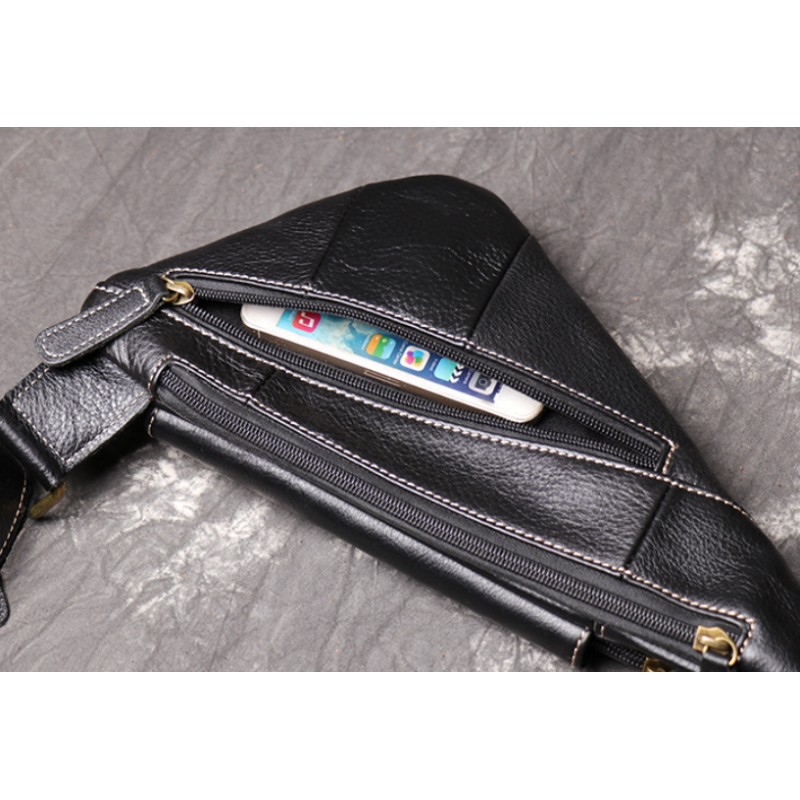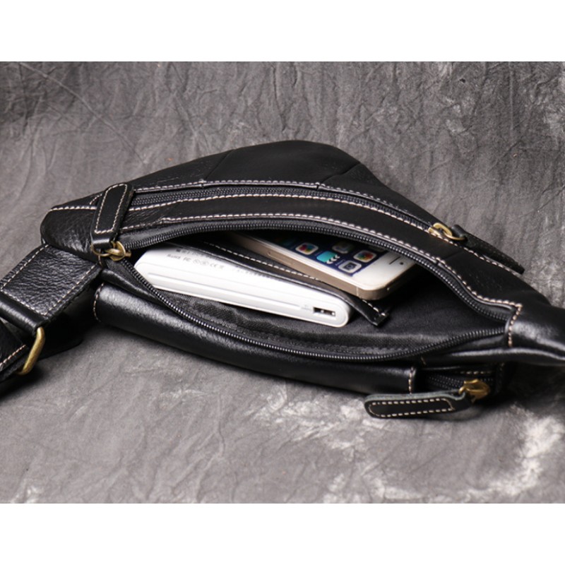 Мужская кожаная бананка сумка нагрудная черная | Сумка-бананка кроссбоди из натуральной кожи, барсетка