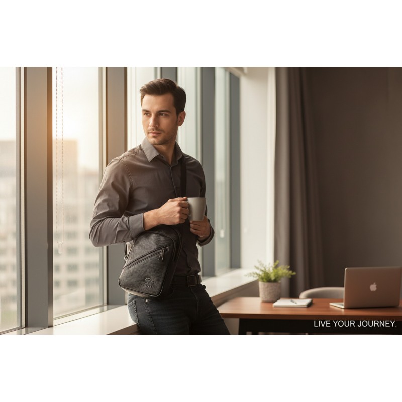 Мужская кожаная сумка бананка стиль Лакоста, сумка слинг для мужчин из натуральной кожи Lacoste