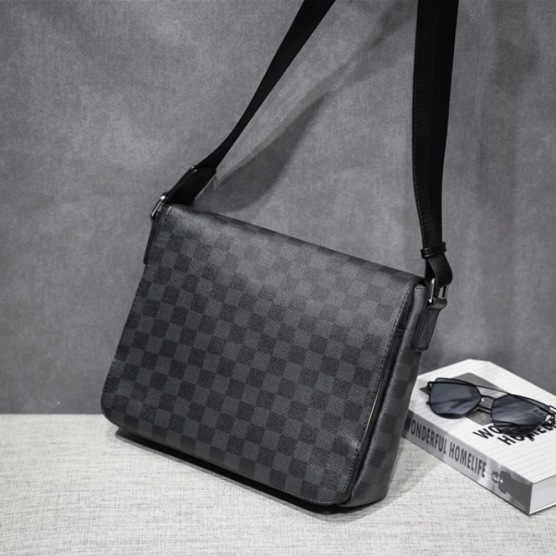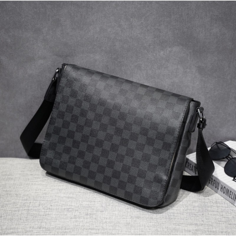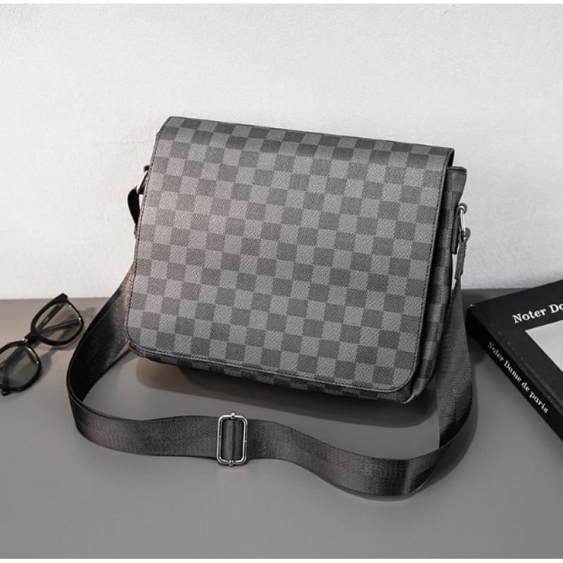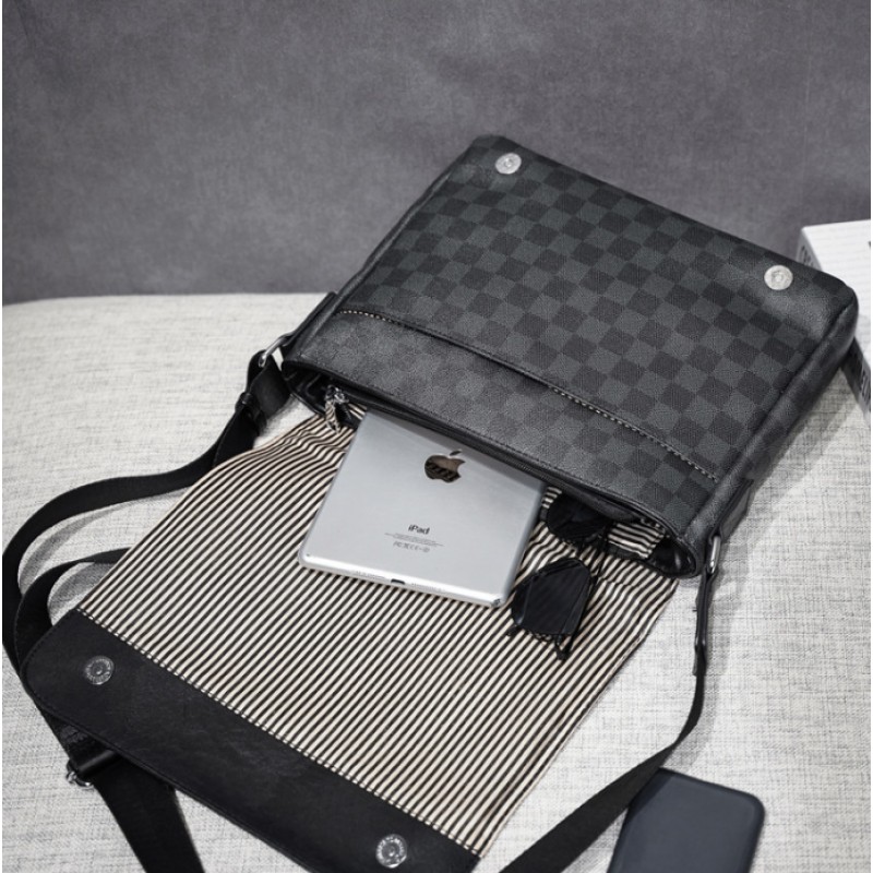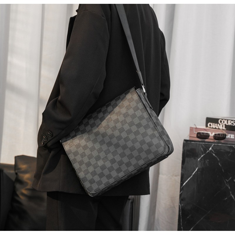 Мужская сумка большая барсетка на плечо в клетку стиль Луи Витон