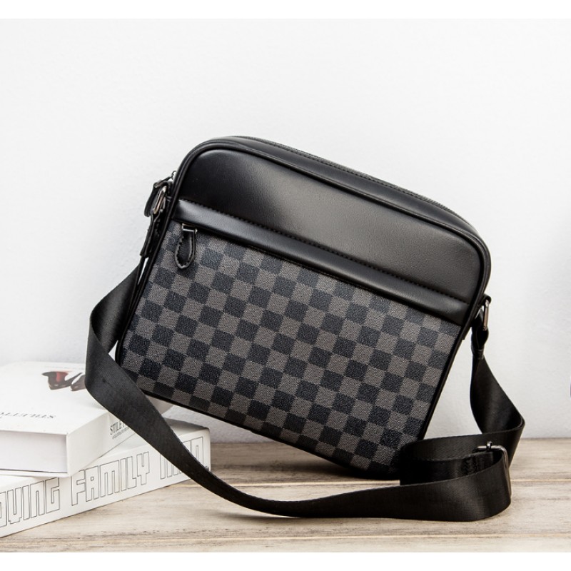 Чоловіча сумка для документів велика барсетка на плече в клітинку стиль Луї Вітон